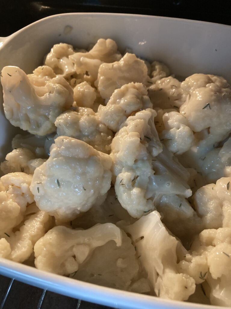 En résumé : un chou-fleur, un pot de cancoillotte et le reste c’est juste de la cuisson à quelques feuilles de thym près…